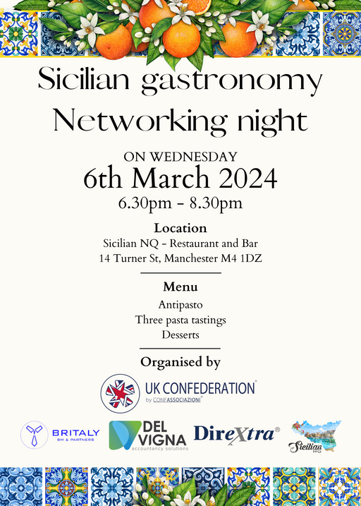 £24.99Sicilian Gastronomy & Networking night🌟 Get ready to indulge in the flavours of Sicily! 🍝 Join us for a great evening at the Sicilian Gastronomy Networking Night! 📅 6th March 2024 ⏰ ... View full details£24.99Sale